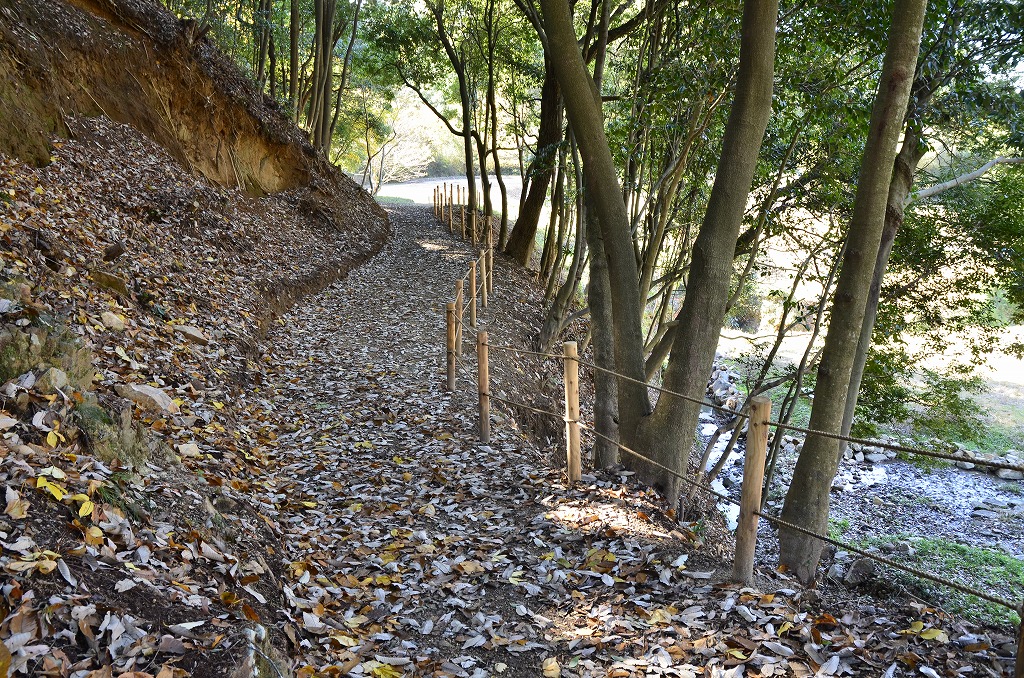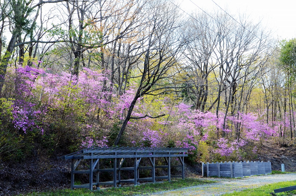 A sunny area at the base of the satoyama forest. In the spring visitors can enjoy taking a stroll while surrounded by brightly flowering azaleas.