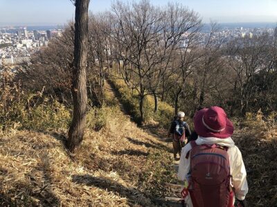 古道を歩き史跡をめぐるハイキング。今回は菊水山を目指し神戸の絶景を眺めたあと、天王吊橋を渡り鍋蓋山へ。有馬街道を下り、祇園神社を見学して平野で解散します。