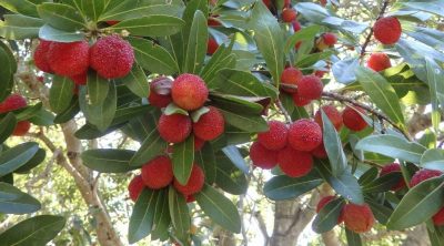 あいな里山公園のヤマモモの実が赤く熟す季節となりました。食べると甘酸っぱいヤマモモの実ですが、一時にたくさんの実がなるために落果して路面を汚すことも度々です。
