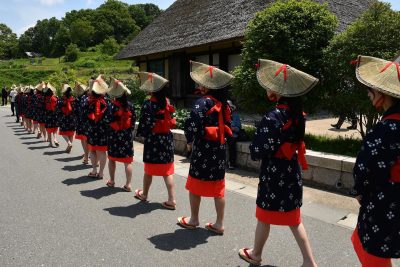 法被(はっぴ)や早乙女衣装の貸出しを行います。里山の風景の中で記念撮影などにどうぞ。