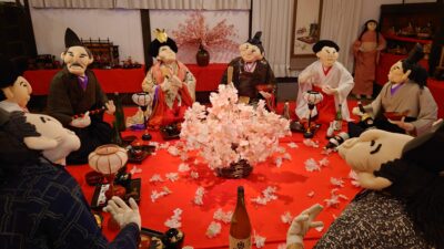今年も2月中旬からお雛様を飾ります。園内「伝庫の家」にて3/31まで。写真映え間違いなし!「かかしのお雛様」と一緒に記念撮影はいかがですか?