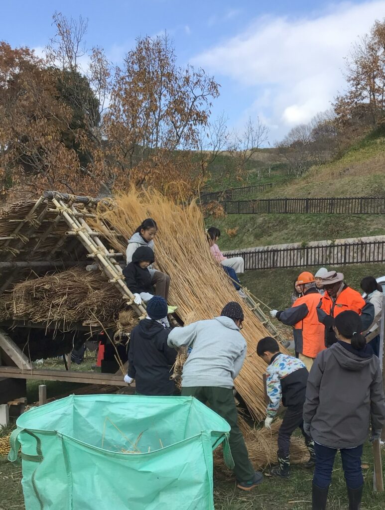 茅葺民家のオブジェをみんなで組み立てるシリーズプロジェクト!作業の様子を見学できます。そろそろ完成に近付いてきましたよ~!事前のお申込み不要なのでぜひ見に来てください!!