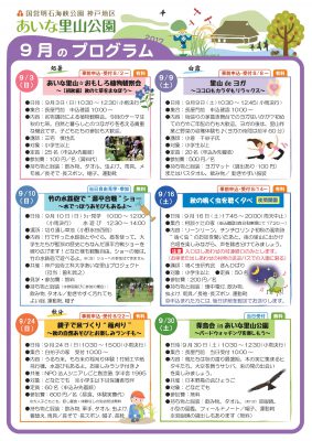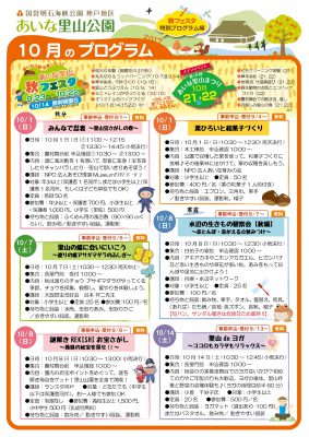 10 月7 日(土)は、蝶の観察会や農村舞台での農村歌舞伎上演(神戸はことら座)など、あいな里山公園ならではのイベントを多数実施します。