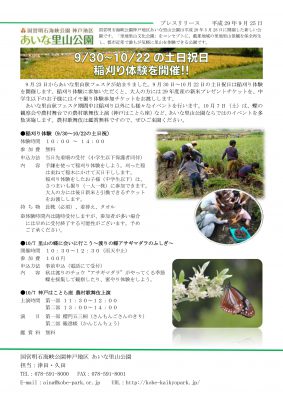9 月30 日~10 月22 日の土日祝日は稲刈り体験を開催します。