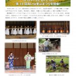 農村舞台ステージではフラ&レイづくり(21日)、アンクルン演奏(21日)、ダンス(21,22日)、和太鼓(22日)、川辺ゆかコンサート(22日)、もちまき(21,22日)など様々な催しを行います。
