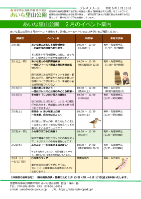 令和5年2月のイベント(プログラム)情報をお知らせいたします。