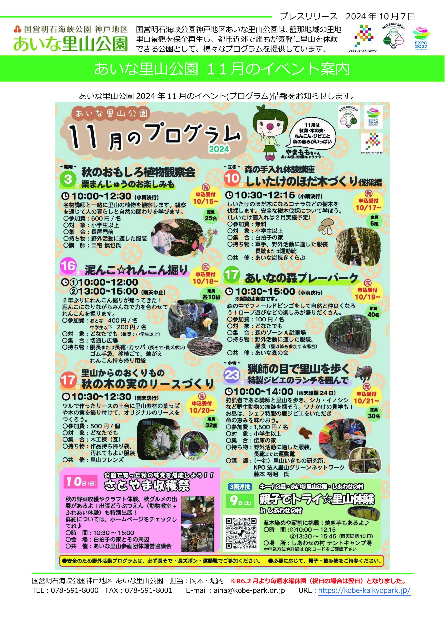 令和6年11月のイベント(プログラム)情報をお知らせいたします。