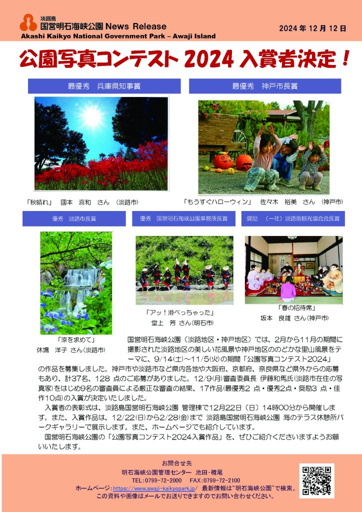 国営明石海峡公園で開催する「公園写真コンテスト表彰式・作品展」を、ぜひご紹介くださいますようよろしくお願いいたします。
