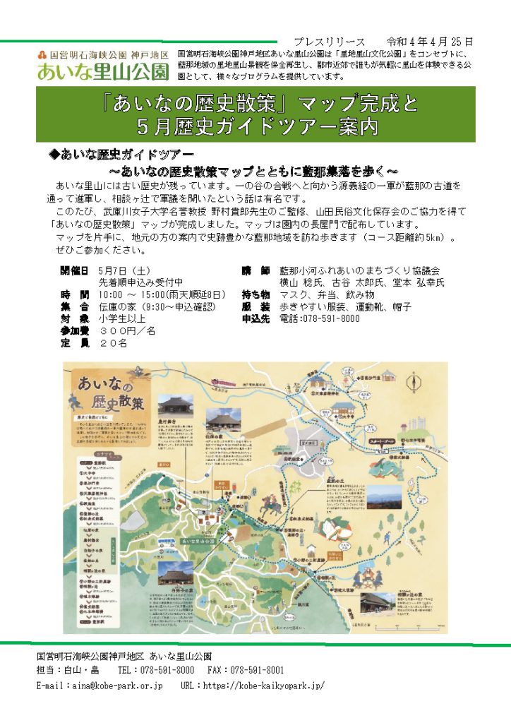 このたび、武庫川女子大学名誉教授 野村貴郎先生のご監修、山田民俗文化保存会のご協力を得て「あいなの歴史散策」マップが完成しました。マップは園内の長屋門で配布しています。