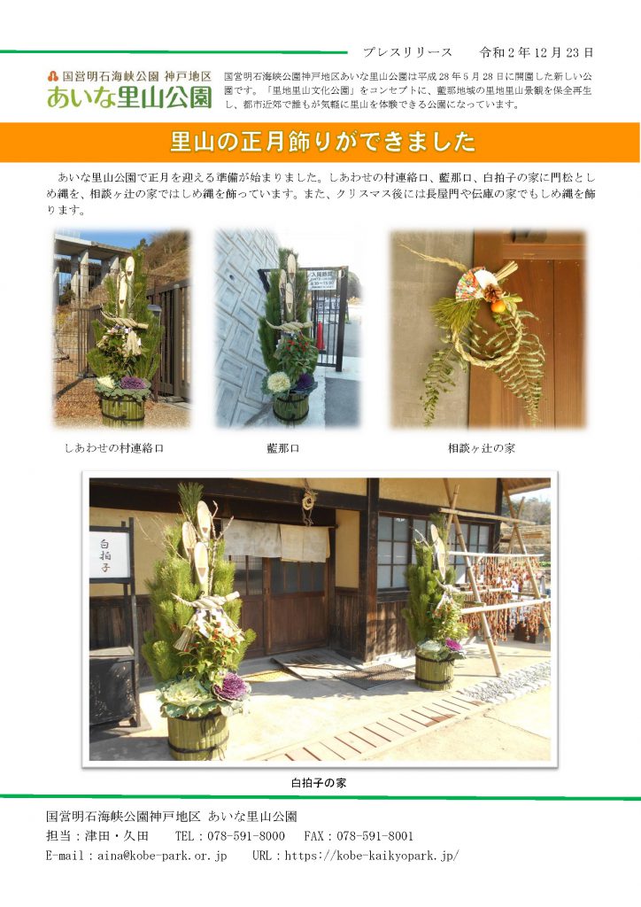 しあわせの村連絡口、藍那口、白拍子の家に門松としめ縄を、相談ヶ辻の家ではしめ縄を飾っています。