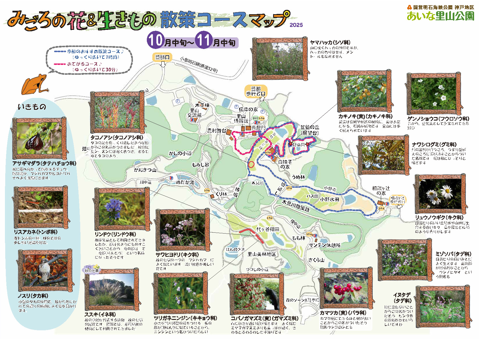 みごろの花&生きもの散策コースマップ(10月中旬~11月中旬)を更新しました。