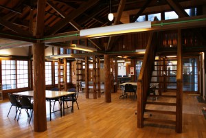 環境学習やセミナーなどを行う「里山交流館」と、工作などを行う「木工棟」です。